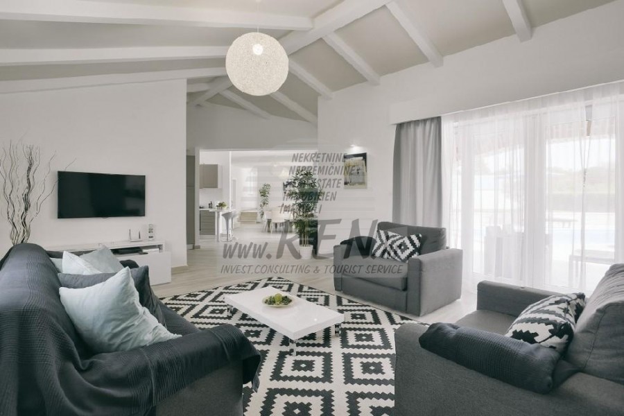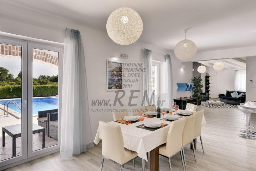 Das Haus verfügt über insgesamt 2x 220 m2, Grundstück hat 1340 m2, ist 5 Min. (300m) vom Meer und vom schönen Naturstrände, 5 min. (1000m) entfernt sind Sie vom Zentrum. Das Haus ist Einfamilienhaus und hat Erdgeschoss und erste Stock (2 Einheit). Es gibt 4 Schlafzimmer, 3 Bader, Wohnzimmer, Küche, Depot, WC. Das Haus ist ausgestattet mit Parkplatz, 2 Terrasse, 2 Schwimmbad 40m2, Kamin, Heizung und Kühlung, Landschaftsgestaltung, Meerblick.
