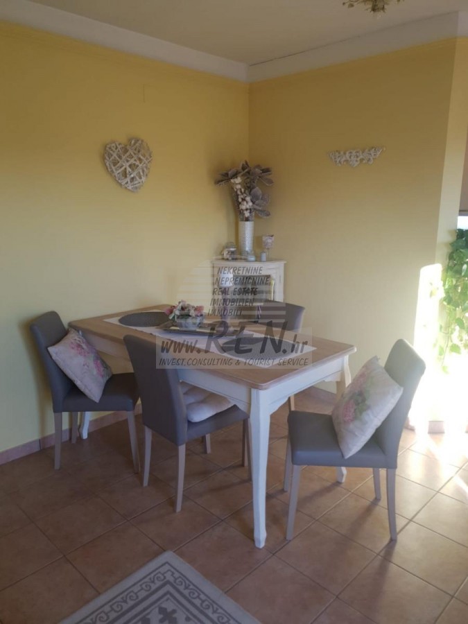 Wohnung in der Nahe von Novigrad haben insgesamt 63,76 m2. Die Wohnung befindet sich auf der Erdgeschoss, erbaut im Jahre 2005, nur 5 min. (2000m) vom Meer und schönen Stränden, 10 min. (6000 m) sind Sie vom Stadtzentrum Umag entfernt. Die Wohnung besteht aus Küche, Wohnraum, Badezimmer, 2 Schlafzimmer, Terrasse. Es ist ausgestattet mit Klimaanlage, verkauft mit Möbeln, Parkplatz.