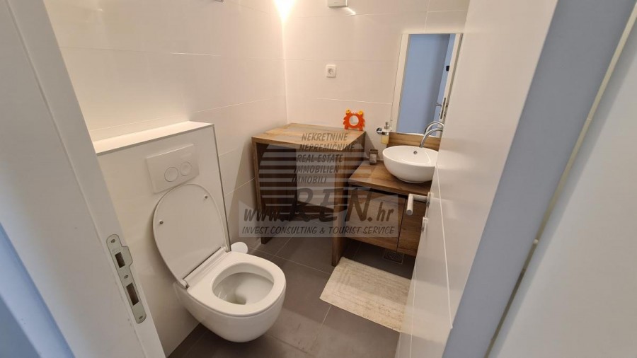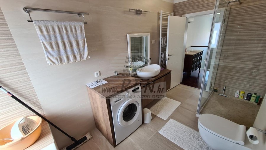 Das Haus verfügt über insgesamt 160 m2, Grundstück hat 80 m2, ist 5 Min. (800m) vom Meer und vom schönen Naturstrände , 5 min. (900m) entfernt sind Sie vom Zentrum von Umag. Reihenhaus mit Keller, Erdgeschoss und erste Stock. Es wurde 2008 gebaut. Verkauft mit Möbeln ausgestattet.