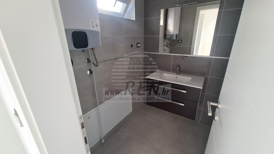 Wohnung in Umag haben insgesamt 67,40 m2, Die Wohnung befindet sich auf erste Stock, im bau, nur 5 min. (400m) vom Meer und schönen Stränden, 10 min. (4000 m) sind Sie vom Stadtzentrum Umag entfernt. Die Wohnung besteht aus Küche, Wohnraum, Badezimmer, 2 Schlafzimmer, Terrasse. Es ist mit einer Klimaanlage ausgestattet, Keller, Garage, Eigenparkplatz.