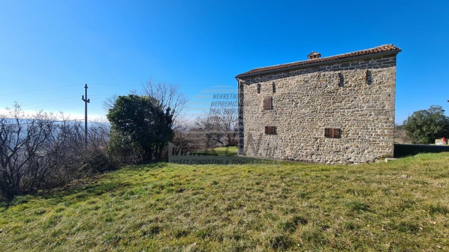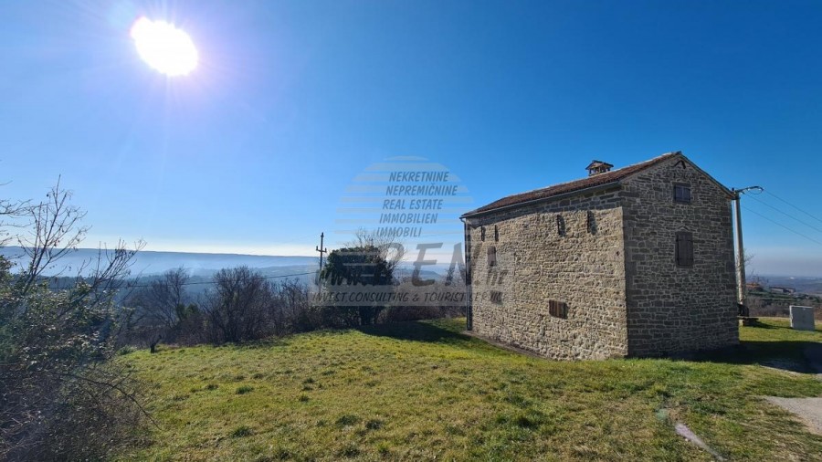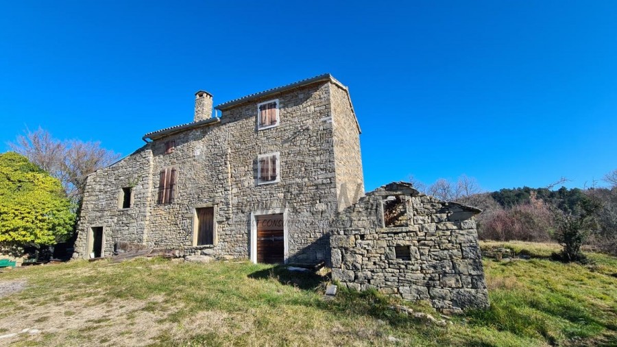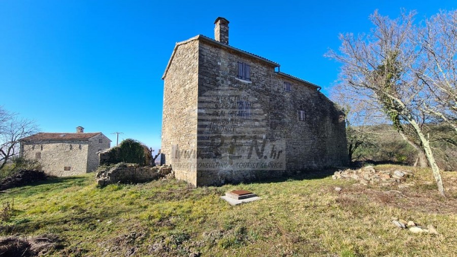 Auf einem schönen Hügel in der Nähe von Grožnjan mit freiem Blick auf die schöne Landschaft und das Meer steht ein komplex von steinhäusern zum verkauf. Mit 3 Etagen mit einer Gesamtfläche von 180 m2, auf einem Grundstück von 1000 m2.