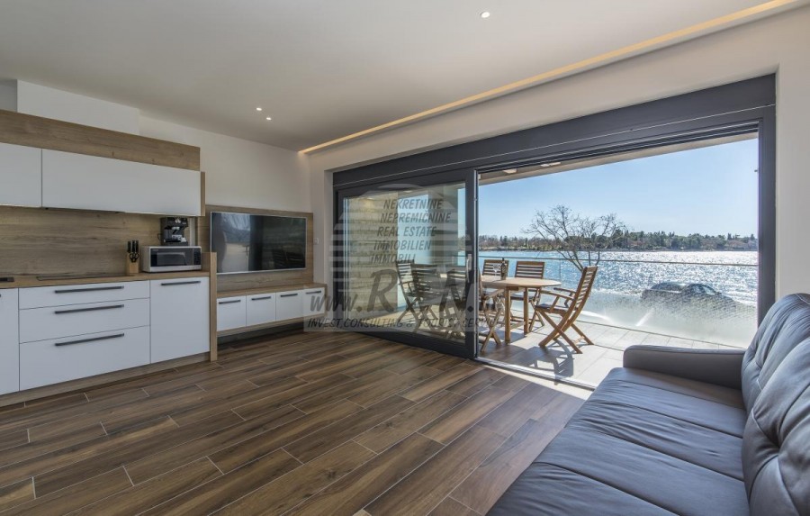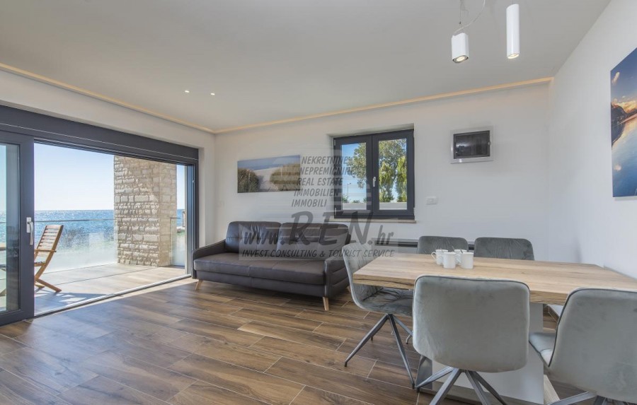 Wohnung in Lovrečica haben insgesamt 78,49 m2 (netto 53,80 m2) Die Wohnung befindet sich am Erdgeschoss, nur 1 min. (5m) vom Meer und schönen Stränden, 10 min. (8000m) sind Sie vom Stadtzentrum Novigrad entfernt. Die Wohnung besteht aus Küche/Wohnzimmer/Esszimmer, Schlafzimmer, Badezimmer, Terrasse. Die Wohnung ist luxuriös ausgestattet, Klimaanlage, Fußbodenheizung, Parkplatz, Blick auf das Meer, gemeinsame Wellness und Sommerküche.