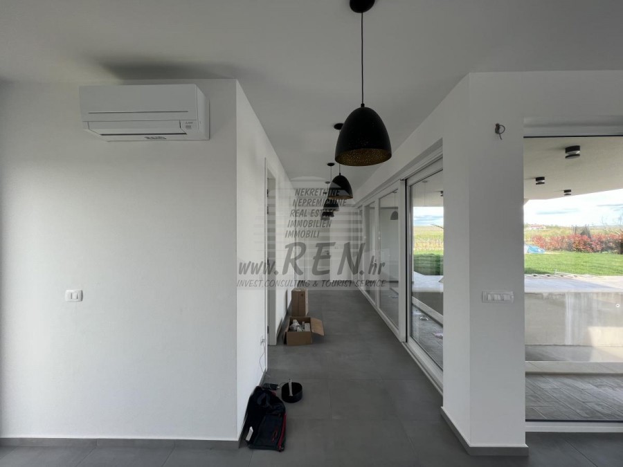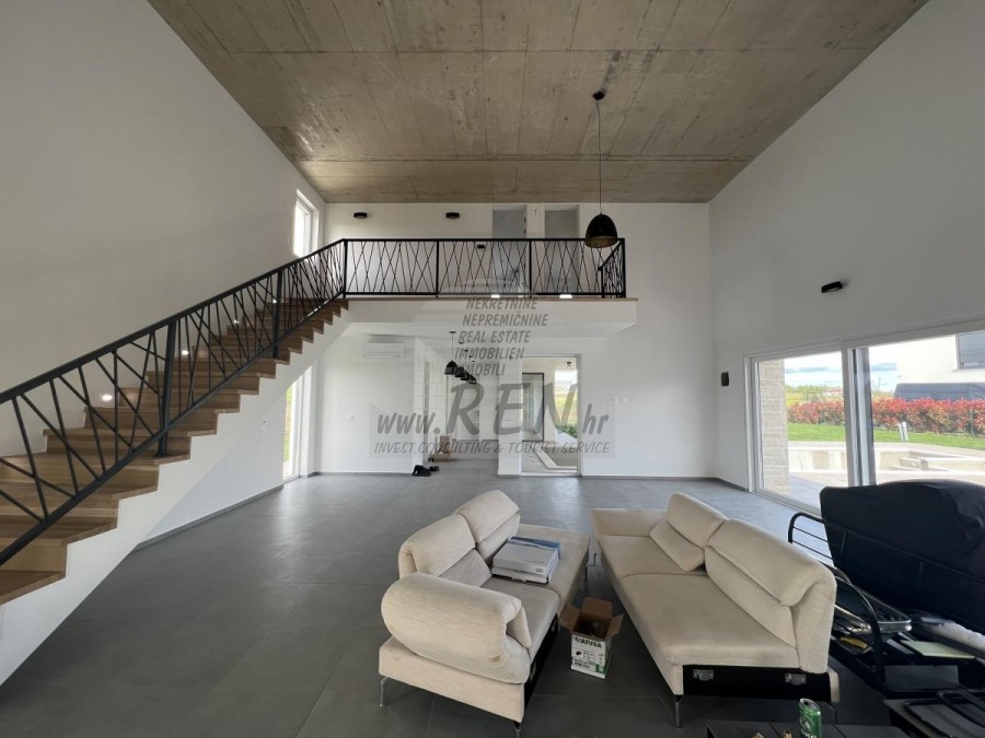 Die Villa hat 220 m2 und ist in Erdgeschoss und Obergeschoss aufgeteilt. Das Erdgeschoss verfügt über eine Eingangshalle, Waschküche, Badezimmer, Abstellraum, Schlafzimmer, Küche mit Essbereich und ein geräumiges Wohnzimmer mit Zugang zum Pool und Garten. Die Deckenhöhe im Wohnzimmer beträgt 5 m. Im Obergeschoss befinden sich 2 Schlafzimmer, jedes mit eigenem Bad und 2 Terrassen von 22 m2 und 10 m2 mit Meerblick. Die Villa verfügt über einen Pool von 48 m2, von dem 1/3 überdacht ist. Der Pool verfügt über eine Gegenstromanlage, Massage und Heizung, sodass er das ganze Jahr über genutzt werden kann. Die Villa befindet sich auf einem großen Grundstück von 1220 m2 und verfügt über einen überdachten Parkplatz. Nur Villen mit Swimmingpools und Ferienhäuser sind in der Nähe. Die Villa kann für Wohnzwecke oder als hervorragende Investition für den Tourismus genutzt werden. Der Preis bezieht sich auf das fertige Haus.Das Haus ist 2000 m von den Geschäften entfernt, 2000 m vom Restaurant entfernt, 4000 m entfernt vom Markt, ein Arzt 10000 m, Apotheke 4000 m, Pula Flughafen ist 60 km, Portorož Flughafen ist 30 km, Yachthafen 10000 m.