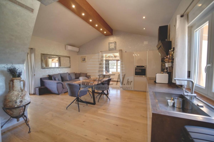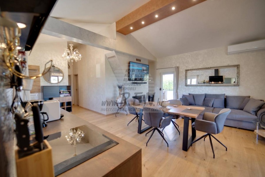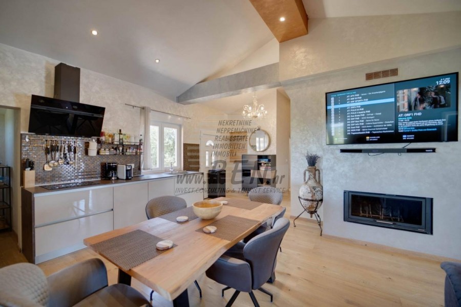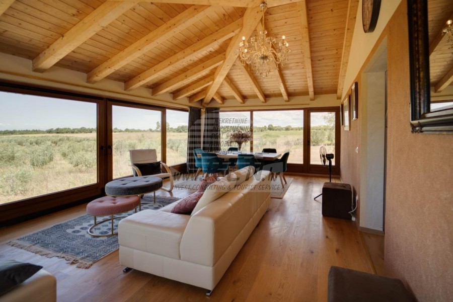Das Haus verfügt über insgesamt 150 m2, Grundstück hat 3371 m2, ist 5 Min. (4000m) vom Meer und vom schönen Naturstrände , 5 min. (4000m) entfernt sind Sie vom Zentrum von Novigrad. Das Haus besteht aus 2 Schlafzimmern, Küche, Wohnzimmer, Bad, Wellness und Terrasse. Luxuriös ausgestattet, geeignet für touristische Vermietung. Das Haus verfügt über einen Kamin, einen privaten Parkplatz, eine Sommerküche, einen Swimmingpool, Meerblick sowie eine finnische und türkische Sauna.