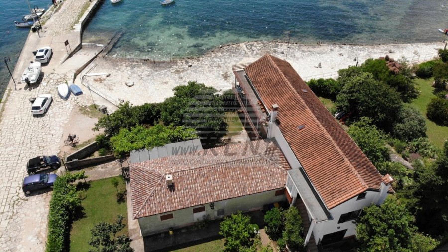 Das Haus verfügt über insgesamt 350 m2, Grundstück hat 833 m2, ist 1 Min. (5m) vom Meer und vom schönen Naturstrände, 10 min. (7000m) entfernt sind Sie vom Zentrum von Umag. Das Haus besteht aus Erdgeschoss, erste Stock, Dachgeschoß. Meerblich, eigenem Parkplatz, erste Reihe zum Meer. Renovierung erforderlich.
