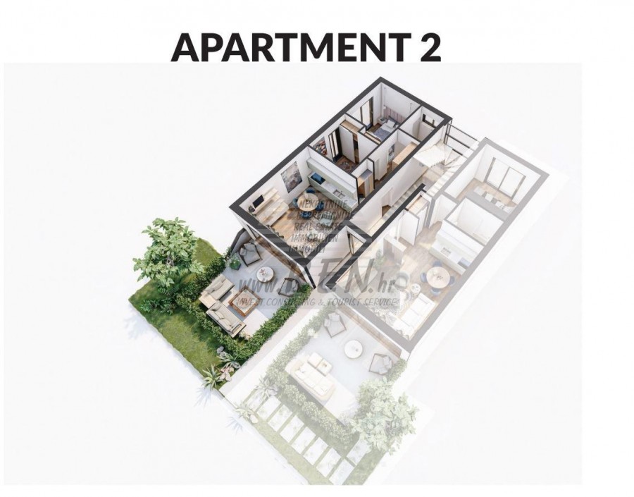 Wohnung mit einer Gesamtfläche von 57,36 m2, Garten 8 m2, nur 5 Min. (100m) vom Meer und von wunderschönen Natursteinstränden, 10 Min. (6000 m) vom Zentrum von Umag entfernt. Die Wohnung befindet sich im Erdgeschoss. Im Aufbau. Insgesamt gibt es 2 Schlafzimmer, Küche, Wohnzimmer, Badezimmer, Abstellraum. Die Wohnung verfügt über 1 eigenen Parkplatz, Terrasse, Kamin, Klimaanlage, luxuriös ausgestattet. In einem privaten Resort mit Rezeption, Möglichkeit zur gemeinsamen Nutzung von Fitnessstudio, Wellness, Kinderspielplatz, Weinbar, 24-Stunden-Betreuung, Ladestation für Elektroautos, Wartungspakete für die Anlage verfügbar.