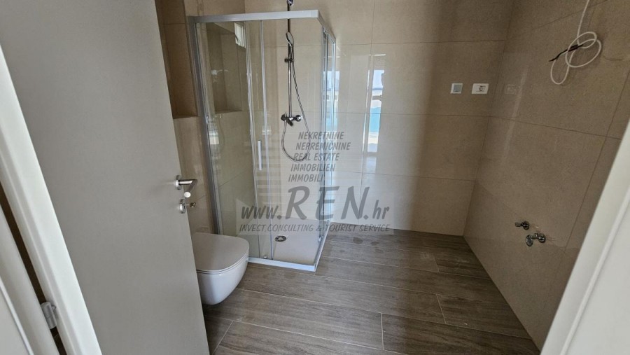 Wohnung A4 mit einer Gesamtfläche von 49,70 m2, nur 5 Min. (400m) vom Meer und von wunderschönen Natursteinstränden, 10 Min. (6000 m) vom Zentrum von Umag entfernt. Die Wohnung befindet sich im zweite Stock. Im Aufbau. Insgesamt gibt es 2 Schlafzimmer, Küche, Wohnzimmer, Badezimmer. Die Wohnung verfügt über 1 eigenen Parkplatz, Terrasse, Klimaanlage, abstellraum.