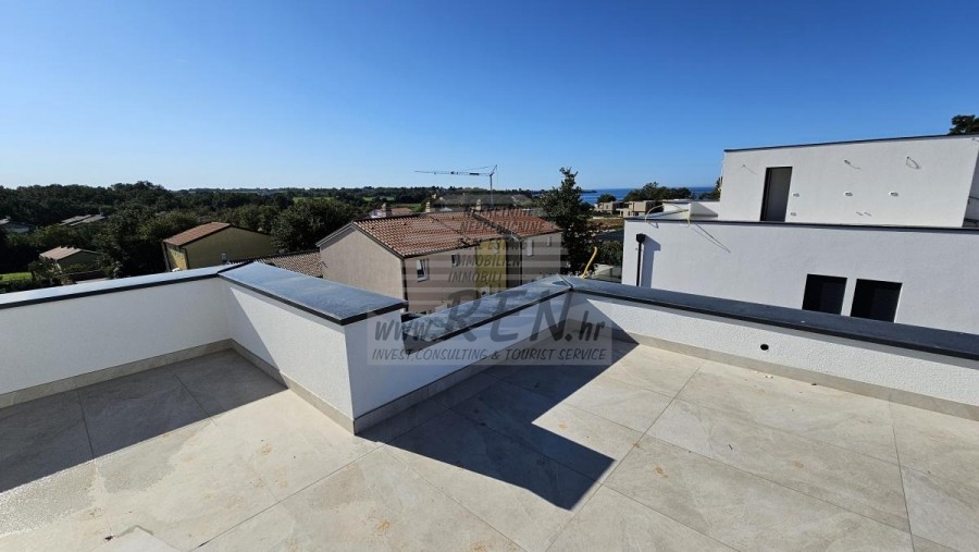 Haus in der Nähe von Novigrad hat eine Gesamtfläche von 150 m2 + Garten 180 m2, besteht aus Erdgeschoss, Obergeschoss und Dachterrasse, im Bau, nur 5 min. (300m) vom Meer und von schönen Stränden, 5 min. (4500 m) vom Zentrum von Novigrad entfernt. Das Haus besteht aus Küche/Wohnzimmer/Esszimmer, 3 Schlafzimmern, 2 Bädern, WC, 2 Terrassen + Dachterrasse. Ausgestattet mit Klimaanlage, 2 private Parkplätze, Meerblick.
