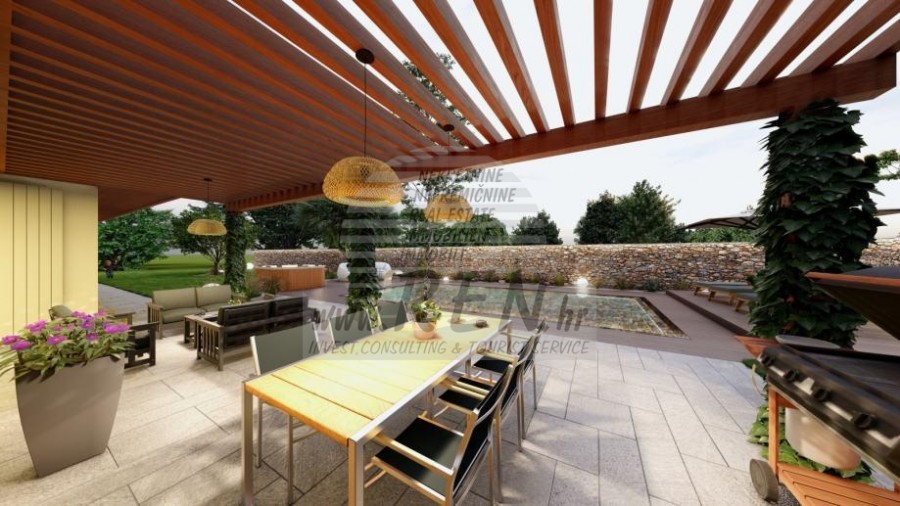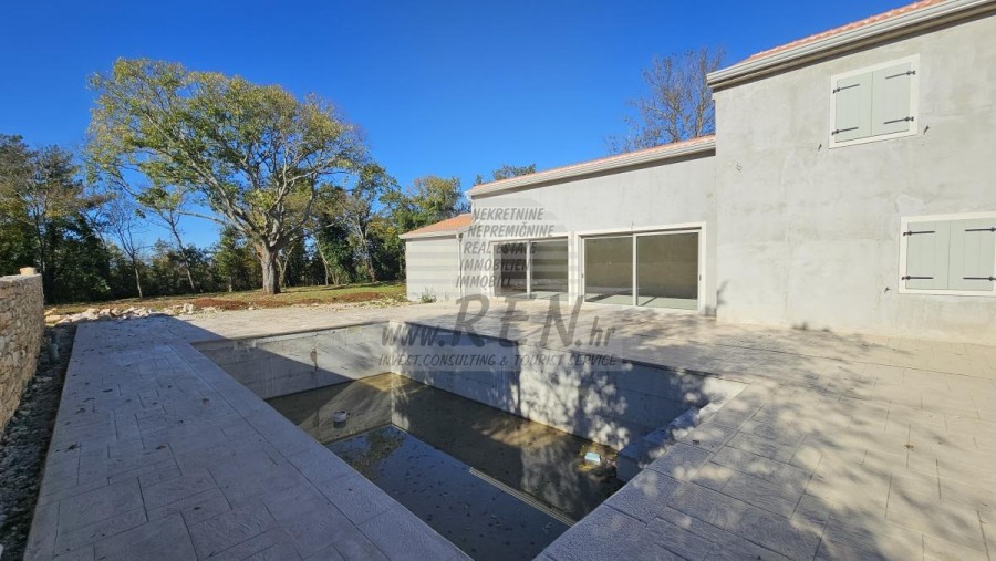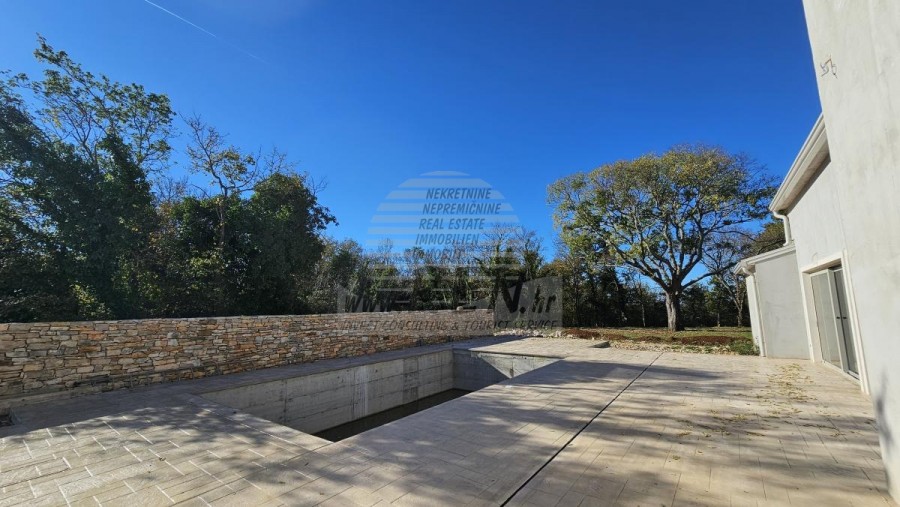 Haus mit einer Gesamtfläche von 262 m2, Grundstück 1000 m2, nur 15 Min. (16000m) vom Meer und von wunderschönen Natursteinstränden, 10 Min. (4000 m) vom Zentrum von Buje entfernt. Das Haus ist freistehend und verfügt über Erdgeschoss und Obergeschoss. Das Haus liegt in ruhiger und schöner Lage inmitten der Natur, eigener Parkplatz, Pool. Das Haus verfügt über vier Schlafzimmer mit jeweils eigenem Bad, Flur, Speisekammer und Küche mit Essbereich. Das große Wohnzimmer mit zentralem Kamin ist der perfekte Ort zum Entspannen mit herrlichem Blick auf den Garten. Fußbodenheizung mit Wärmepumpe, Kühlung mit Klimaanlagen in jedem Raum. Im Preis des Hauses sind alle Oberflächen enthalten – Keramik, Wandmalerei, Zimmertüren, Wärmepumpe zum Erhitzen von Brauchwasser und Fußbodenheizung, Klimaanlage in jedem Zimmer und Wohnzimmer, Schwimmbad mit Ausstattung, Innensauna und Hydromassagewanne im Freien.