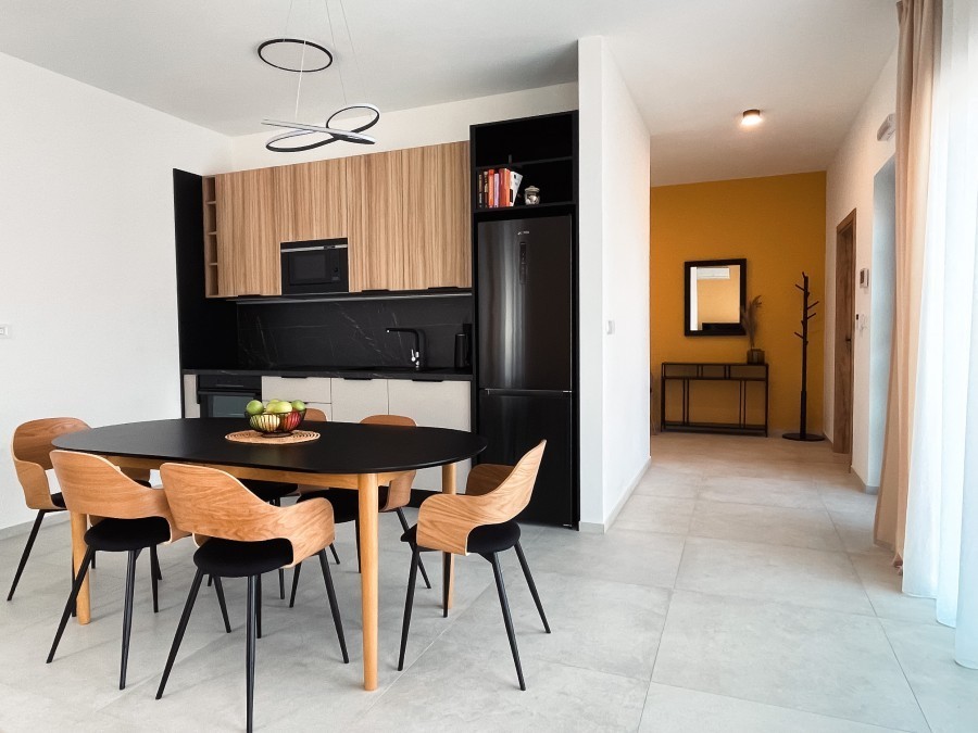 Pomer, herrliches mit Pool und Meerblick. Toplage in Pomer + das Haus befindet sich in Pomer, in der Nähe der ACI Marina sowie des Dorfzentrums. Das Haus ist modern gestaltet, qualitativ hochwertig gebaut, mit erstklassiger Ausstattung: Es besteht aus einem Erdgeschoss, in dem sich ein Flur, ein Wohnzimmer mit Küche und Esszimmer, eine Toilette, ein Schlafzimmer mit Bad, ein Abstellraum und einer Terrasse, die zum Pool (300x544x150) mit automatischer Technologie führt, befinden. Im Erdgeschoss ist auch eine Garage und eine Wintertaverne, die vielfältig umgestaltet werden kann, ebenfalls klimatisiert. Im Obergeschoss befinden sich noch 2 Zimmer, jedes mit einem Bad und einer Terrasse, beide klimatisiert. Das Haus ist komplett ausgestattet mit Zentral-/Fußbodenheizung, Videoüberwachung + Alarmsystem. Das Grundstück umfasst einen Parkplatz für 2 Autos, einen Pool und einen Garten mit automatischer Bewässerung der Umgebung. Ideal für die Beschäftigung mit touristischen Atraktionen, aber auch für das Familienleben. Im Angebot ist ein Doppelhaus, zu denselben Bedingungen.