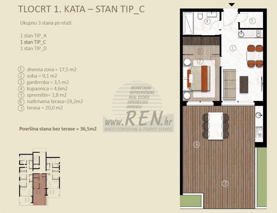 Wohnung 4B in Novigrad hat insgesamt 36,5 m2 ohne Terrasse, befindet sich im erste Stock, Bauphase, 5 min. (1000 m) vom Meer und vom wunderschön angelegten Strand entfernt, 5 Min. (1000 m) vom Zentrum von Novigrad entfernt. Die Wohnung besteht aus einer Küche/Wohnzimmer/Esszimmer, 1 Schlafzimmern, 1 Bädern, Abstellraum, Garderobe, Terrasse 20 m2. Besonderheiten der Wohnung: