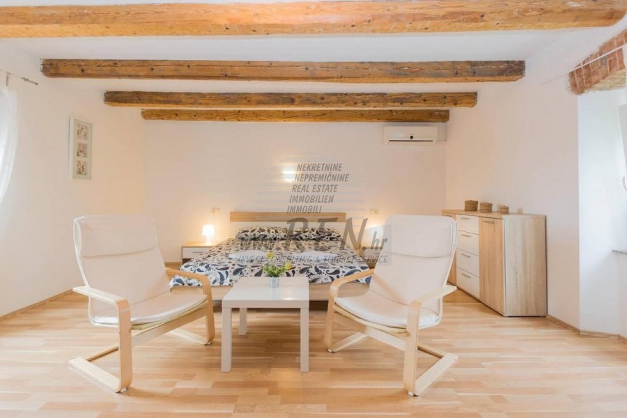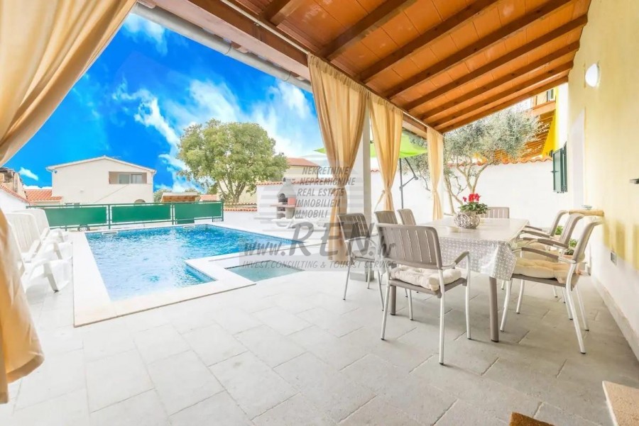 Ein Reihenhaus zum Verkauf in ruhiger Lage in der Nähe von Pula. Das Haus ist 130 m2 groß und besteht aus einem überdachten Eingang, einer Eingangshalle, einer Waschküche, 3 Schlafzimmern, von denen 2 über ein eigenes Bad verfügen, und einem offenen Bereich mit Küche und Esszimmer sowie einem Wohnzimmer mit Zugang zu einem überdachte Terrasse und Garten. Das Haus verfügt über einen Pool und einen Garten von 150 m2. Jedes Zimmer im Haus ist mit einer Klimaanlage ausgestattet (insgesamt 4). Das Haus ist komplett möbliert. 2 oder mehr Parkplätze. Die Entfernung zum Meer und dem wunderschön dekorierten Strand beträgt 4 km und das Zentrum von Pula 3 km. Das Haus kann zu Wohn- oder Touristenzwecken genutzt werden.