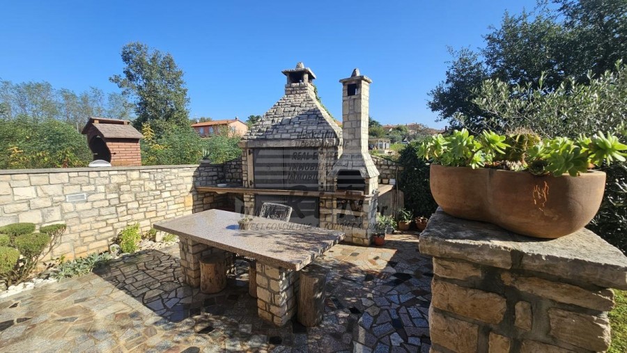 Das Haus hat insgesamt 300 m2, + Garten 500 m2, es ist 5 Min. (2000m) vom Meer und von einem wunderschön angelegten Naturstrand, 10 Min. (6000m) vom Zentrum von Novigrad entfernt. Das Haus hat ein Erdgeschoss, ein Obergeschoss und einen Keller. Das Haus hat 3 separate Einheiten (von denen 2 zu einer ausgezeichneten Miete vermietet werden). Es hat eine Garage von 20 m2 und einen Keller/Abstellraum von 20 m2. Heizung und Kühlung durch Zentralheizung und Klimaanlagen. Schön dekorierter und gepflegter Garten und Sommerküche mit großem Steingrill.