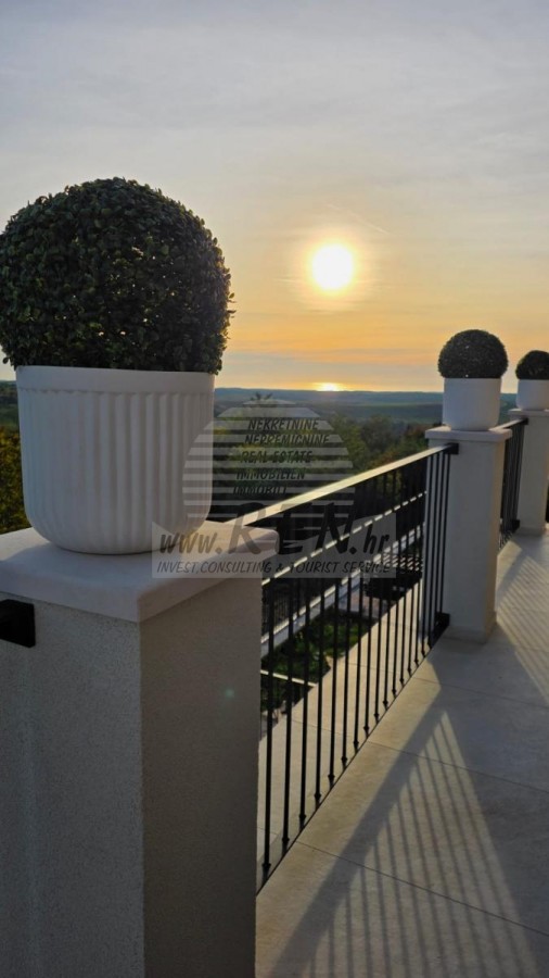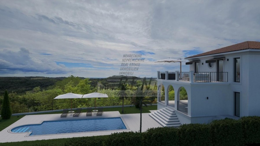 Eine Luxusvilla mit einer der schönsten Aussichten Istriens befindet sich in einem ruhigen und kleinen Ort in der Nähe von Buje, von dem aus sich ein zauberhafter Blick auf den Berg Učka, den Fluss Mirna und das Meer und sogar die Alpen bietet. Das Haus verfügt über insgesamt 384 m2 (280 m2 Wohnfläche und 104 m2 Terrasse), Keller, Erdgeschoss und ersten Stock, schöne Aussicht von jedem Zimmer, 3 Schlafzimmer und einzigartige Einrichtungen - Casino, Kino, Weinkeller, Spa, zwei Küchen (eine versteckte Küche für das Hilfspersonal), ein versteckter Panikraum, eine drehbare Parkplattform und ein praktisches System zur Aufbewahrung schmutziger Kleidung.