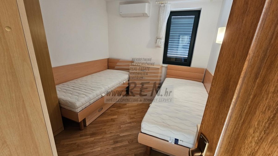 Die Wohnung in Novigrad in großartiger Lage hat insgesamt 55 m2, befindet sich im ersten Stock, wurde 1991 gebaut, ist 1 Min. (20 m) vom Meer und vom schönen Strand entfernt, 1 Min. (50 m) vom Zentrum von Novigrad. Die Wohnung besteht aus 2 Schlafzimmern, Bad, Küche, Terrasse. Sie ist mit Klimaanlage, privatem Parkplatz, Tiefgarage und Möbeln ausgestattet.
