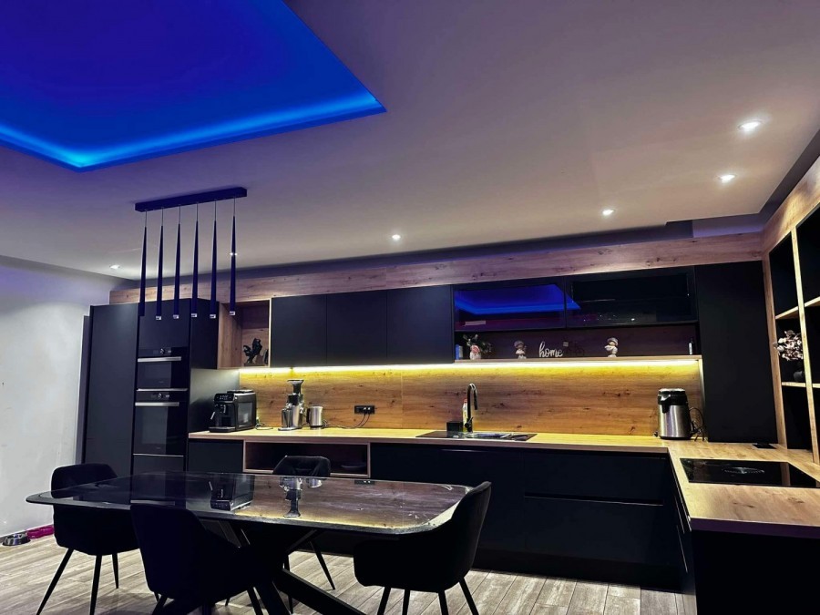 Die zum Verkauf stehende Wohnung hat eine netto reduzierte Fläche von 151 m² und besteht aus einem Eingangshalle, einem offenen Wohnzimmer mit Küche und Essbereich, 4 Schlafzimmern, 2 Badezimmern und einer sehr großzügigen Terrasse (mit Meerblick). Die Wohnung befindet sich im 4. Stock des Gebäudes (mit Aufzug), ist komplett eingerichtet und luxuriös möbliert und wird genau so verkauft. Die Ausstattung der Wohnung ist neu, und die gesamte Möbel wurden nach Maß angefertigt.